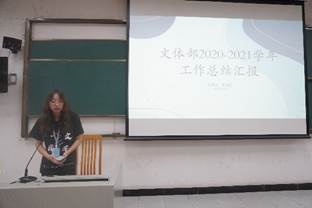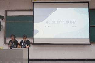 学生会各部门进行年度工作总结汇报。学术创新中心首先表达其工作感受以及对团学的感谢,随后介绍了其开展的学术活动成果,分享其工作的有益经验,针对遇到的困难和问题进行反思并表示将继续改进;文体部和宣传与新媒体中心则通过展示其上学年的工作成果进行工作汇报,并对工作中的不足进行反思改进。